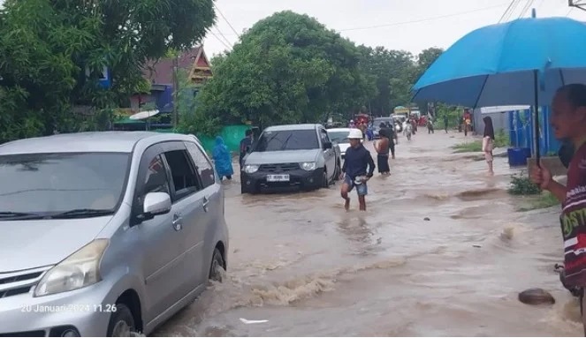 Hal itu disebabkan debit air Sungai meluap dan memasuki ruas jalan.