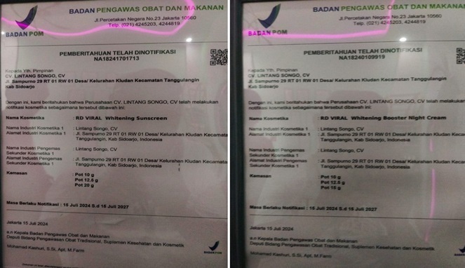 Sementara Rahmawaty, Difungsi Inspeksi BPOM Makassar lainnya mengatakan, RD Viral, yang satu booster sunscreen, satu yang night creamnya, dari Badan POM menyatakan bahwa produk tersebut betul-betul sudah ternotifikasi.