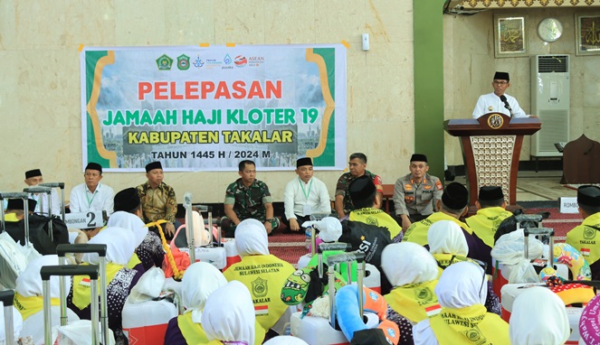Pada kesempatan yang sama, Kepala Kementerian Agama Kab. Takalar H. Solihin melaporkan bahwa sebanyak 274 Jamaah Haji 1445 H/2024 M Kloter 19 dilepas dan diberangkatkan di Majid Agung Takalar. Dengan rincian laki-laki 78 orang dan perempuan 196 orang.